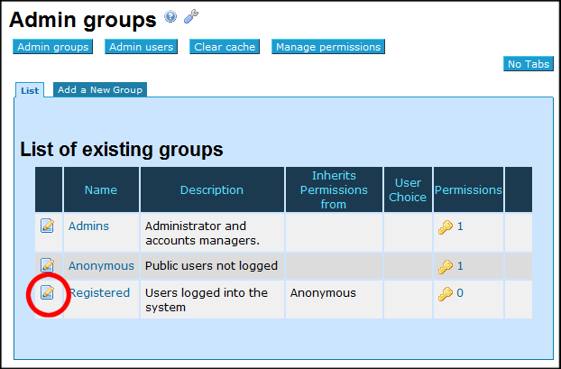 - 그룹 관리 페이지에서, 등록됨 그룹을 편집하십시오.