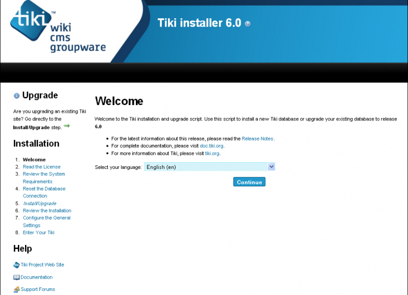 The Tiki Installer includes important links to the ReleaseNotes and Documentation. Be sure to review these documents before installing Tiki.