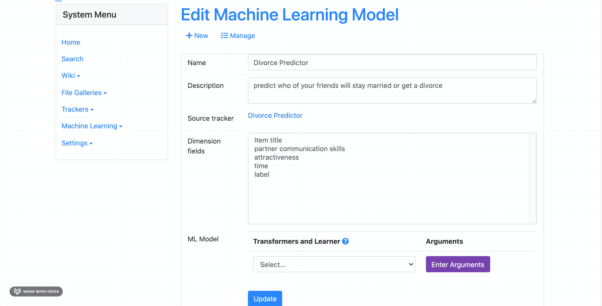 In this basic documentation to machine learning feature in Tiki, you'll discover how to create Machine leaning (ML) models, train against data stored in trackers and query models.