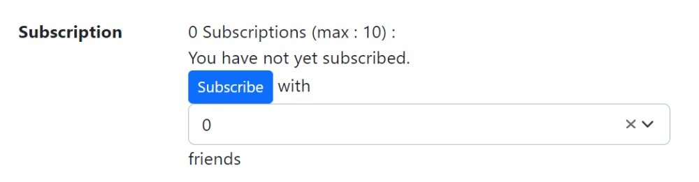 This tracker field type is typically used in a tracker for an event subscription. The field allows a user to subscribe to the tracker item and indicate number of eventual friends joining him/her. The administrator can set up the maximum number of subscriptions. Each time, a user subscribes the number will decrease. A user can not anymore subscribe if the number is null. The list of users who have subscribed can be seen by the administrator in the field value.