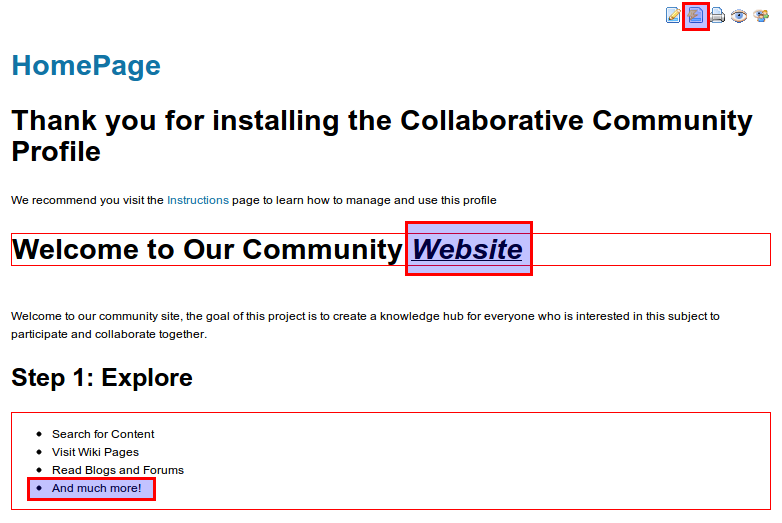 - Sections that Tiki cannot handle editing of (e.g. sections containing plugins) are marked as not-editable. The user must use the standard editor to alter such content.